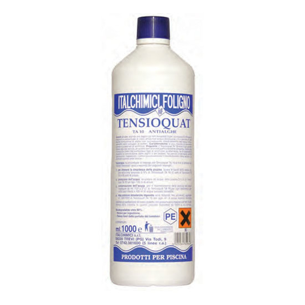 Proprietà : il Tensioquat TA 10 dato il suo grande potere algicida (dovuto all'azione dell'ammina particolarmente presente) battericida e fungicida (dato dal particolare tipo di ammonio quaternario), ha la proprieta' di impedire la riproduzione delle alghe e dei batteri; ha percio' un'energica azione igienizzante impedendo contemporaneamente l''intorbidimento delle acque e la ricontaminazione delle stesse.
