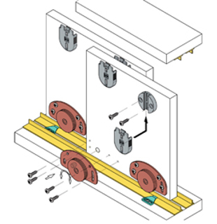 Kit accessori con binari per ante scorrevoli (da ordinare a parte) di armadi e arredamenti per ante da kg.40 marca koblenz kit completo per 1 anta scorrevole, binario escluso da ordinare a parte.