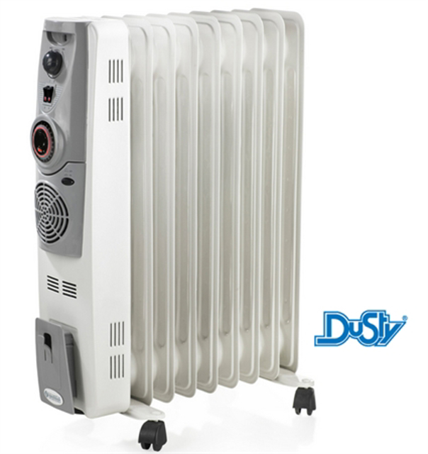 Radiatore elettrico ad olio a 9 elementi 1000 watt, tasto accensione con indicatore luminoso , termostato a controllo selezione temperatura. Ottimo come sempre a lunga vita riscaldante, il più affidabile e sicuro Marca Dusty Ferritalia